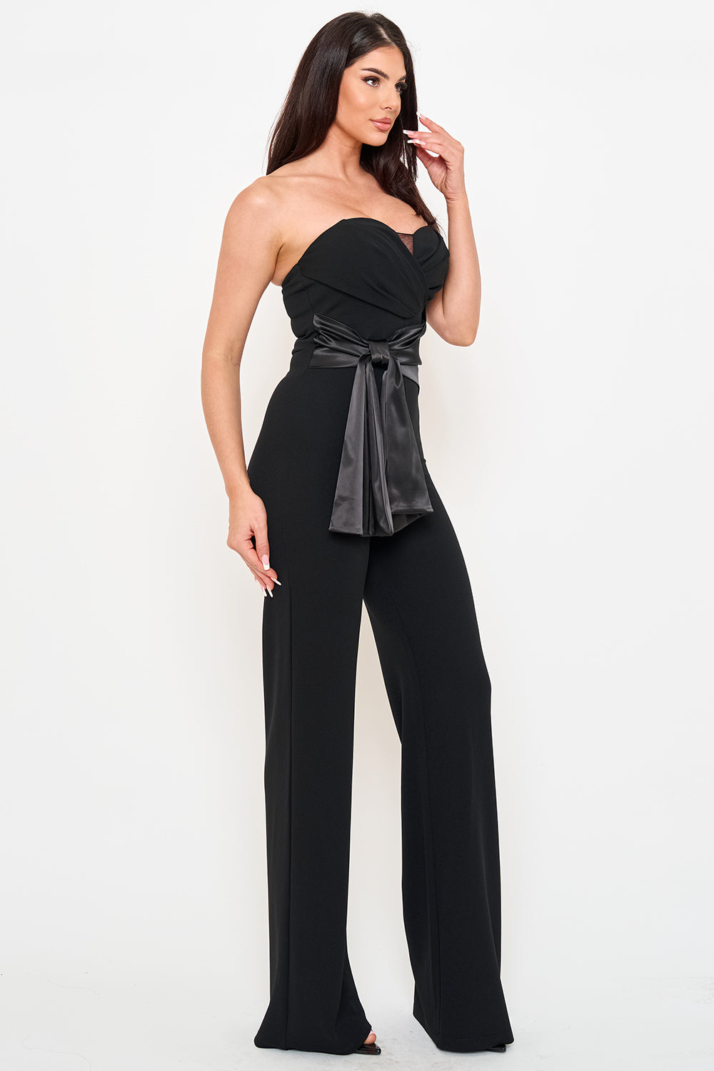 Symphony Jumpsuit - Satin Waist Twist Tie Jumpsuit | Zezebe