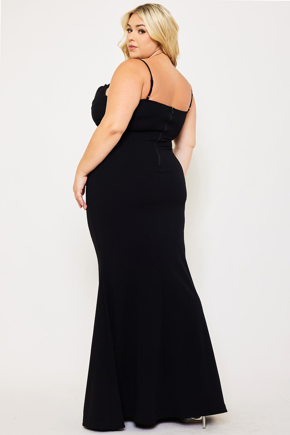 FLOWER EMBELLISHED ON BUST PLUS SIZE MAXI DRESS