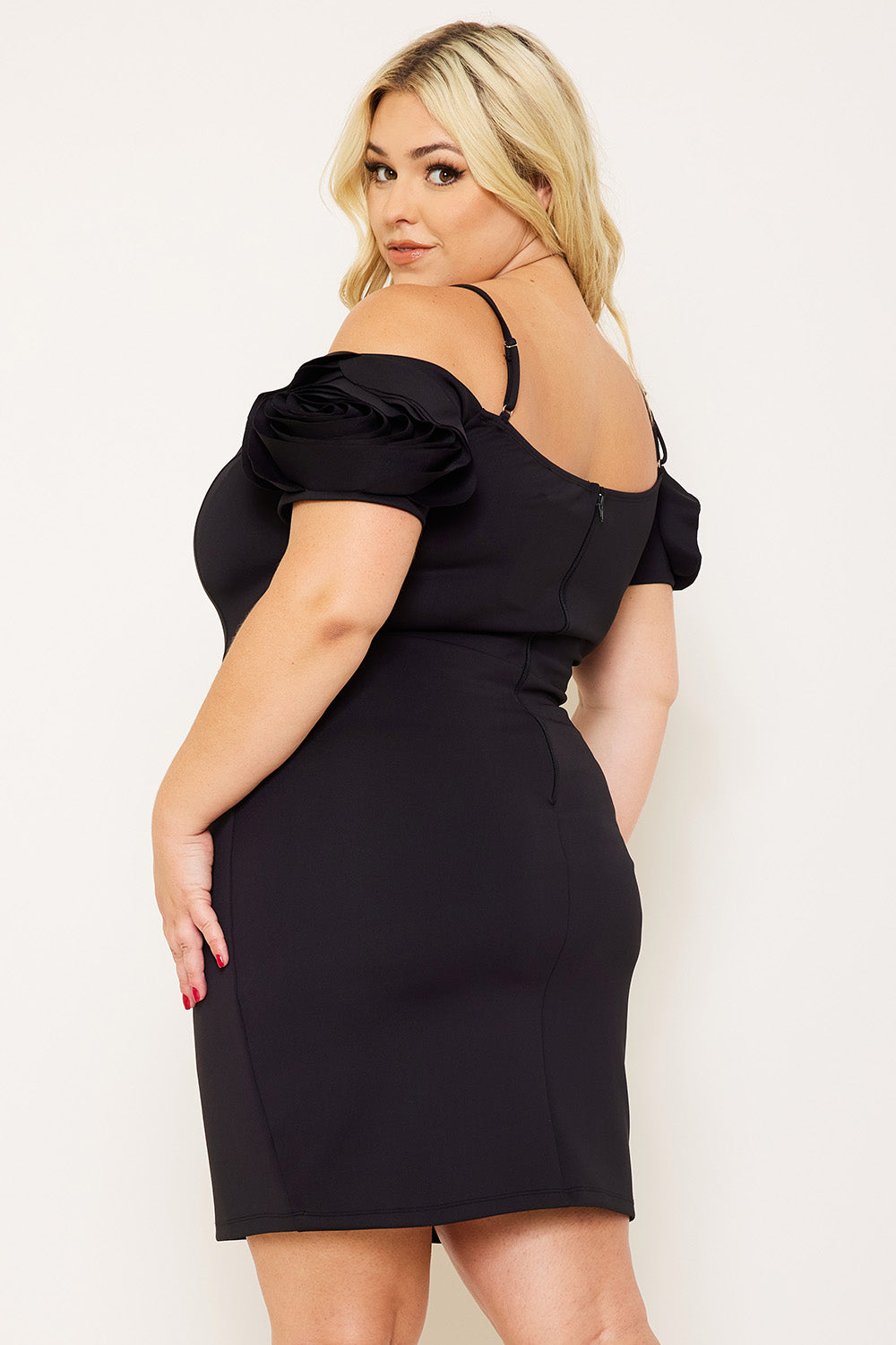 Symphony Dress - Flower Oblique On Sleeve Plus Size Night Out Mini Dress | Zezebe