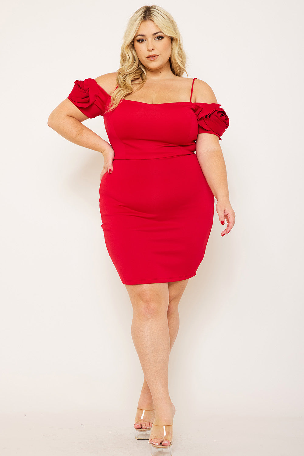 FLOWER OBLIQUE ON SLEEVE PLUS SIZE MINI DRESS