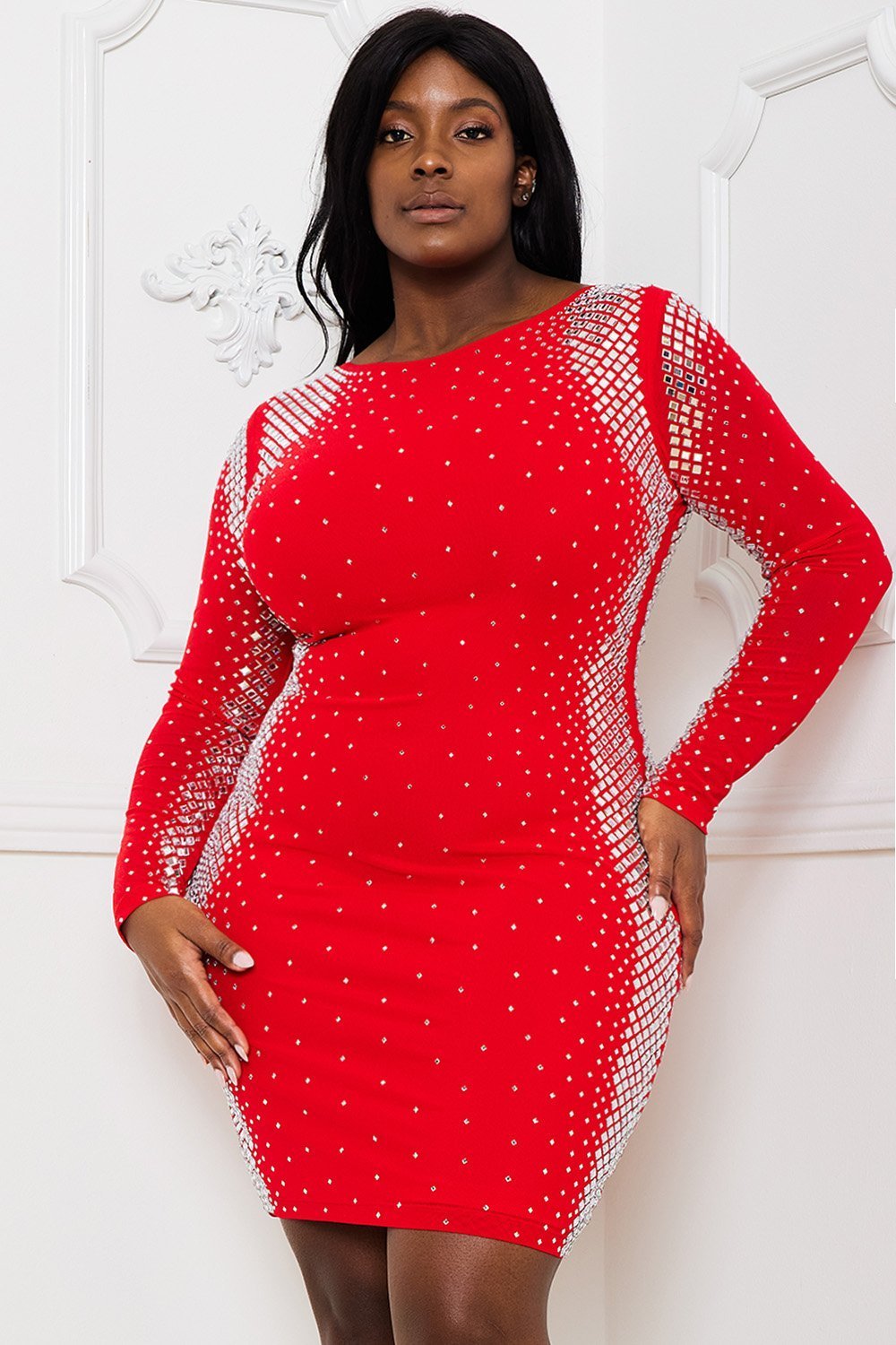 SQUARE AND RHINESTONE MESH PLUS SIZE MINI DRESS