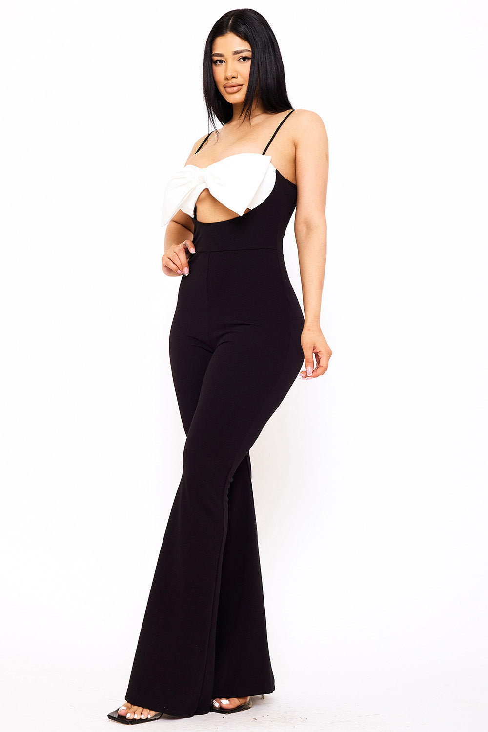 COLOR CONTRAST BOW BUST FRONT JUMPSUIT