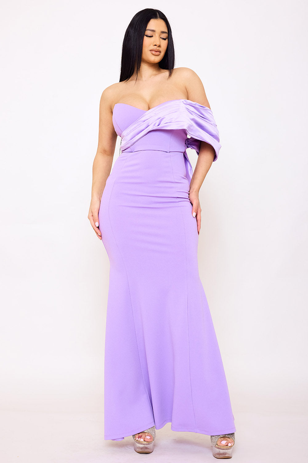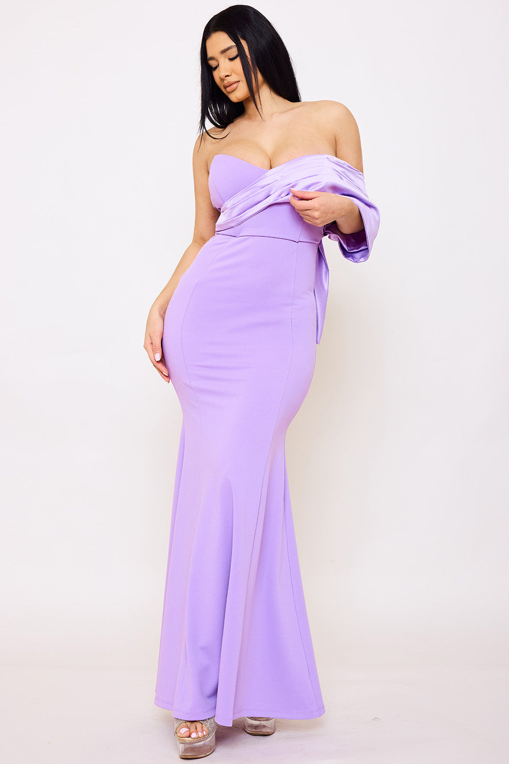 CREZIA FABRIC WITH SATIN LARGE BOW DETAIL MAXI DRESS