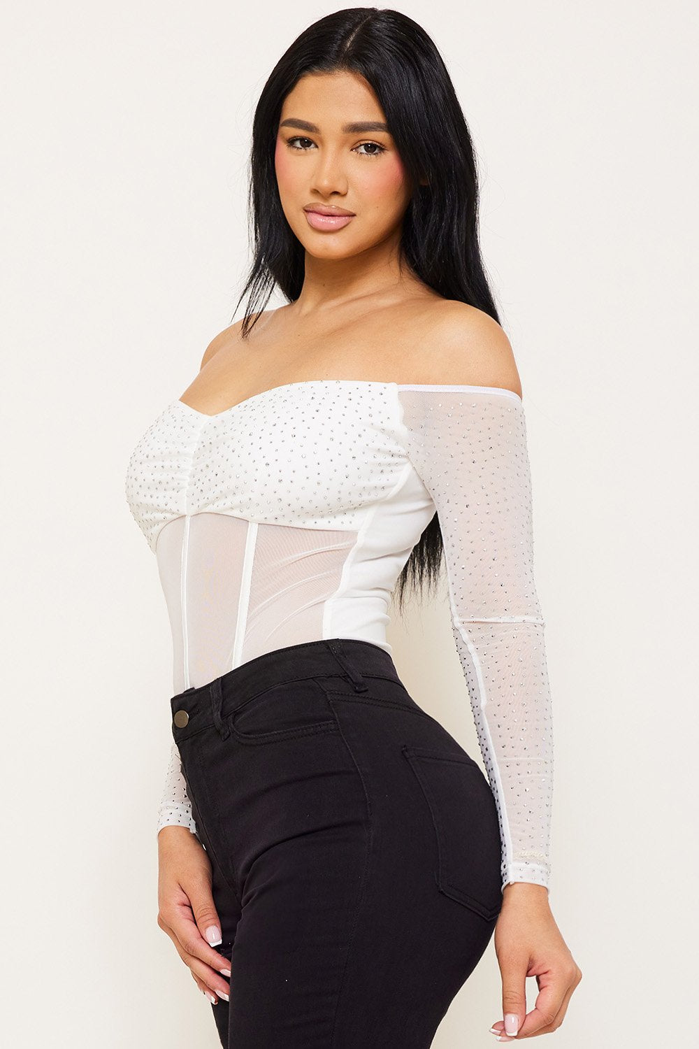 RHINESTONE OFF THE SHOULDER BODYSUIT