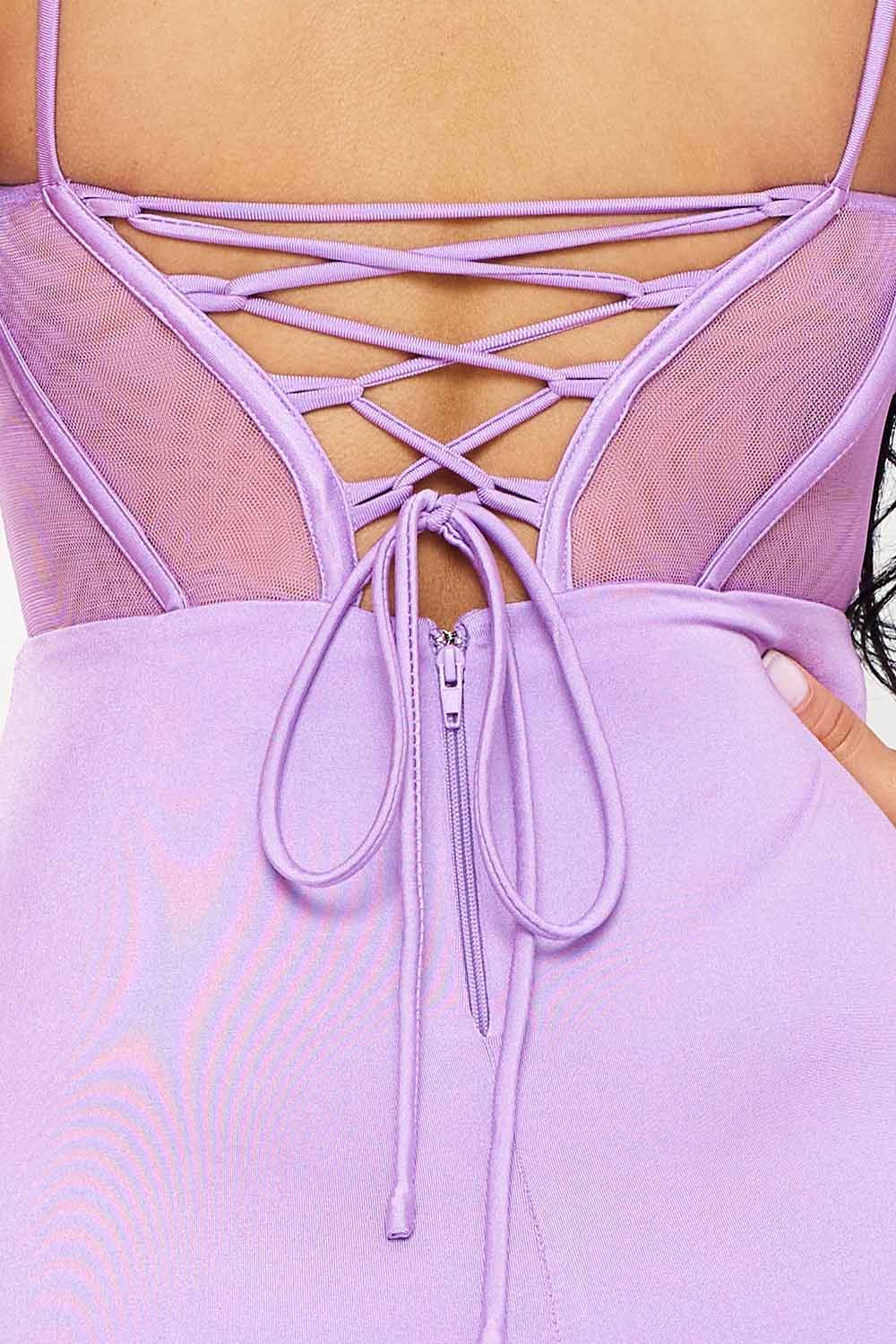 SATIN MESH BUSTIER DOUBLE LAYER RUFFLE MAXI DRESS