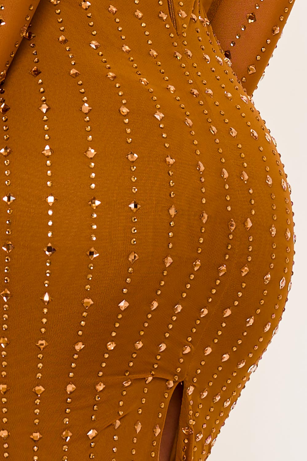 Symphony Dress - Square Rhinestone On Mesh Midi Dress | Zezebe