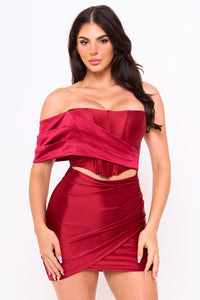 PEARL SATIN ONE SLEEVE OFF THE SHOULDER MINI DRESS